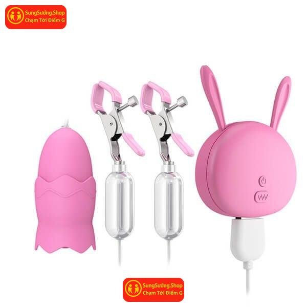 Trứng Rung Âm Đạo Hậu Môn Kết Hợp Lưỡi Liếm Kẹp Ti Mini Nhỏ – Đa Chức Năng, Trải Nghiệm Mới Lạ